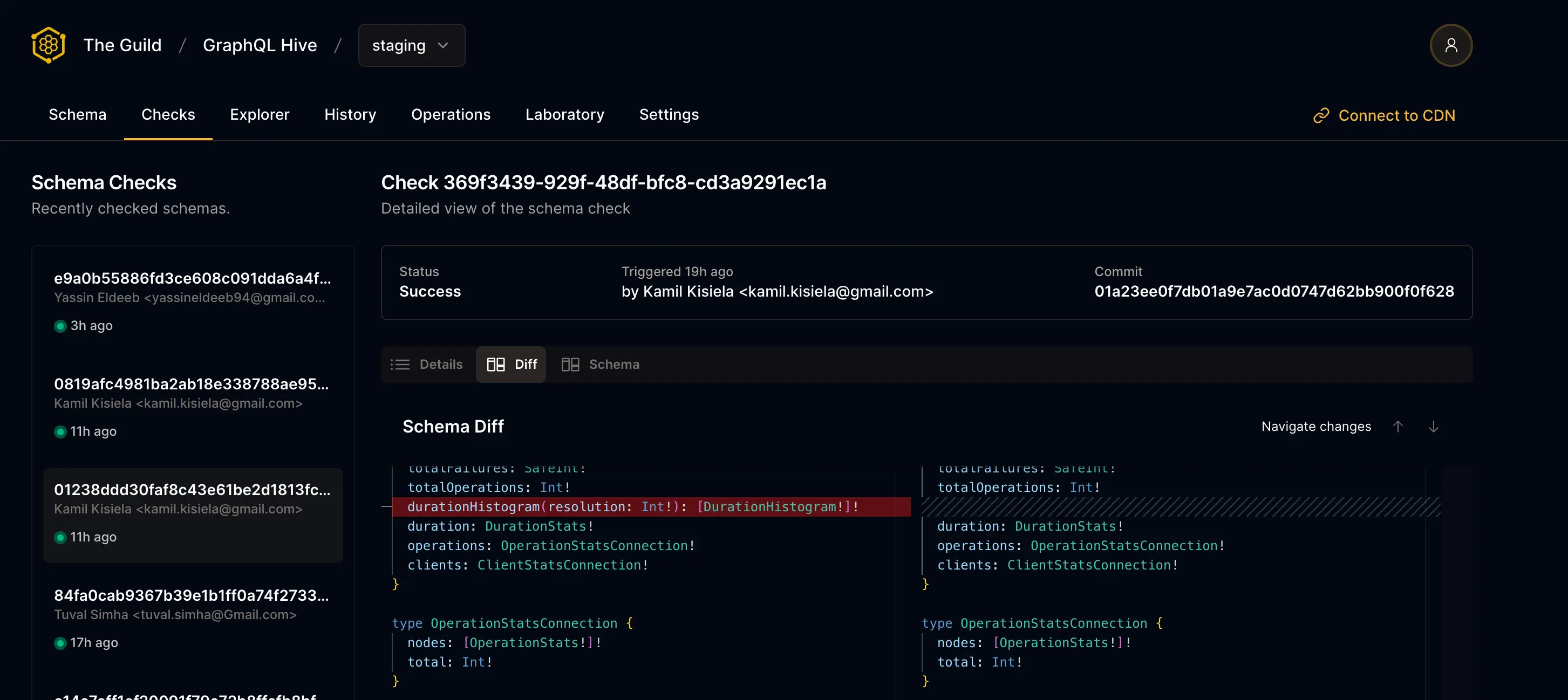 Hive is essential to us handling more than 750M GraphQL requests every month. We ship with certainty that schema changes will not break clients. The atLeastOnceSampler is crucial to capture telemetry from less-often run operations. The schema explorer condenses hours of searching through Github for client usage down to minutes.